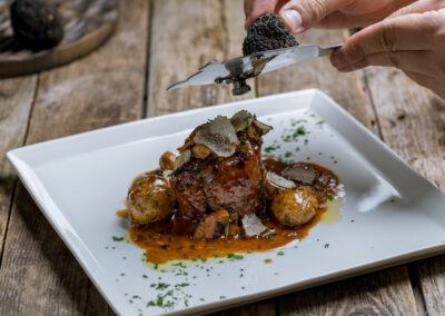 Un secondo piatto ricercato, in cui la faraona viene resa succosa dal guanciale ed ancora più saporita dai porcini e dal tartufo!