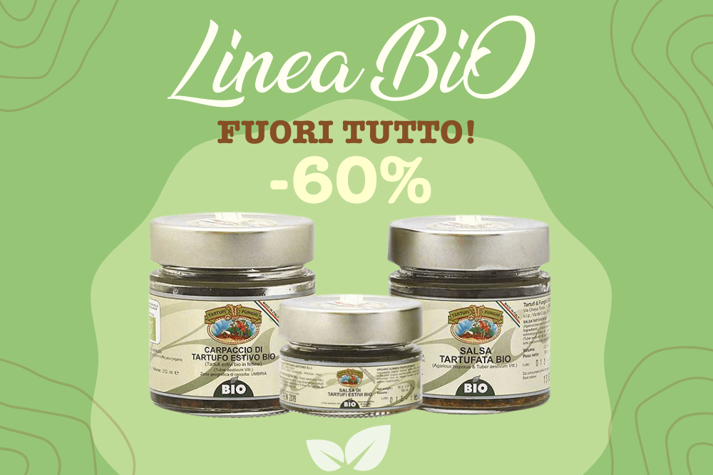 Ci impegniamo per proporti sempre il meglio delle specialità al tartufo, come la nostra Linea Bio, certificata e priva di conservanti, coloranti e aromi artificiali; allo stesso tempo siamo contro lo spreco del cibo, per questo ti offriamo una selezione della Linea Bio con scadenza ravvicinata* al -60% di Sconto: un prezzo veramente vantaggioso per te e per la natura.