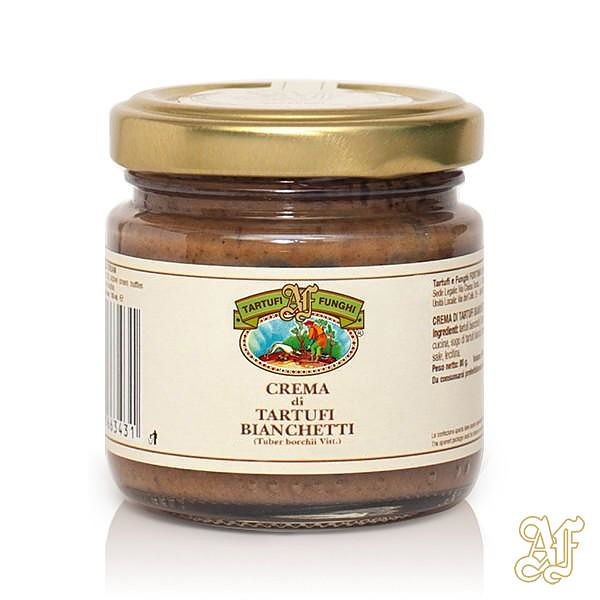 La Crema di Tartufi Bianchetti è un’appetitosa salsa col 75% di Tartufo Bianchetto (Tuber albidum Pico). Il Tartufo Bianchetto, raccolto tra l’inverno e la primavera, ha un’aroma vivace, lievemente piccante e agliaceo. Le sue caratteristiche organolettiche vengono esaltate da piatti a base di latte o formaggio.