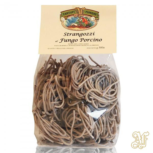 Gli Strangozzi al Fungo Porcino sono strangozzi al cui impasto di farina, uova e sale si aggiungono funghi porcini disidratati.