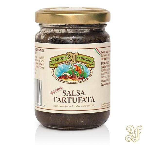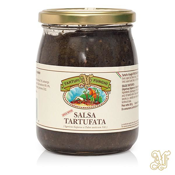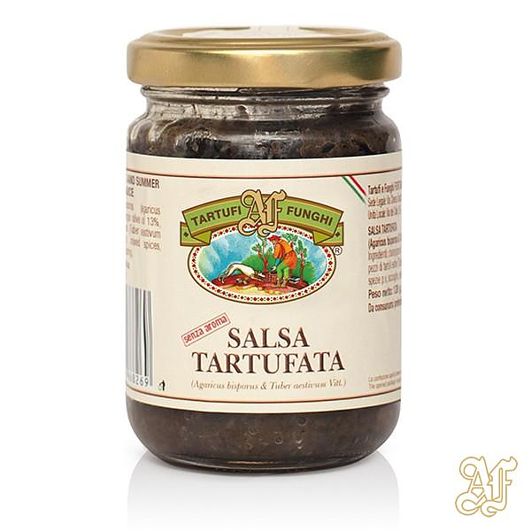 - Ideale da spalmare su pane tostato per un’ottima bruschetta, la Salsa Tartufata Senza Aromi è perfetta anche per condire primi piatti di pasta o riso, come ripieno di pasta farcita o accostata a secondi piatti di carne; la Salsa Tartufata Senza Aromi può essere protagonista di piatti caratteristici, come la frittata al tartufo o la stracciata d’uovo al tartufo, e può rafforzare il profumo ed il sapore di piatti a base di Tartufo Nero Pregiato o di Tartufo Estivo.