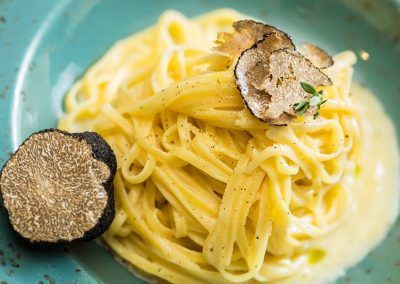 Un primo piatto gustoso e al contempo delicato, in cui l’aroma del tartufo si sposa perfettamente con la cremosità del burro fuso.