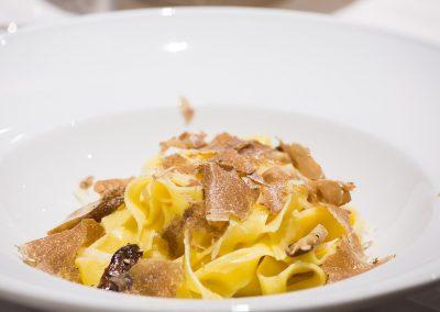 Si ipotizzano, per quanto riguarda il tartufo bianco, 15-20g di prodotto a persona, per cui sì: 80g è la quantità che lo chef ritiene idonea per questo piatto. Il prezzo cambia settimanalmente e, logicamente, in base alla pezzatura.