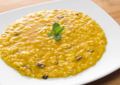 Come tradizione vuole, oltre ai funghi porcini la ricetta prevede l’utilizzo di altri odori che arricchiscono di sapori e profumi il piatto: cipollotto fresco, prezzemolo, brodo vegetale il tutto amalgamato con le patate e il burro che conferiscono grande cremosità alla ricetta.